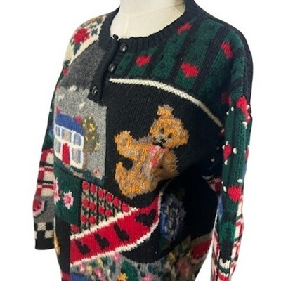 Keywords: The Eagle's Eye, Novelty Sweater, Teddy Bear Sweater, Wool Sweater, Hand Knit Sweater, Patchwork Sweater, Vintage Sweater, Small Sweater, Pullover Sweater, Crewneck Sweater, Whimsical Sweater, Cozy Sweater, Winter Sweater, Holiday Sweater