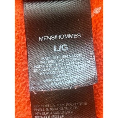 Keywords: The North Face, fleece pullover, quarter zip, long sleeve, mens, orange, gray, activewear, outdoor, layering, size L, fleece jacket