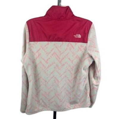 Keywords: The North Face, fleece jacket, pullover, womens, pink, white, quarter zip, outdoor, hiking, camping, casual, cozy, jacket, layering