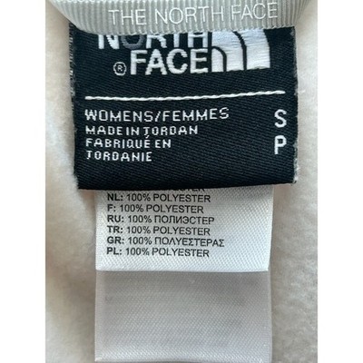 Keywords: The North Face, fleece hoodie, womens hoodie, full zip hoodie, cream hoodie, pink logo, activewear, hooded sweatshirt, outdoor apparel, casual wear, small, S, sportswear, athletic hoodie