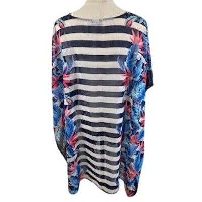 Keywords: Tommy Bahama, poncho, top, blouse, floral, striped, sheer, lace up, multicolor, resort wear, beach cover up, tropical, bohemian, boho