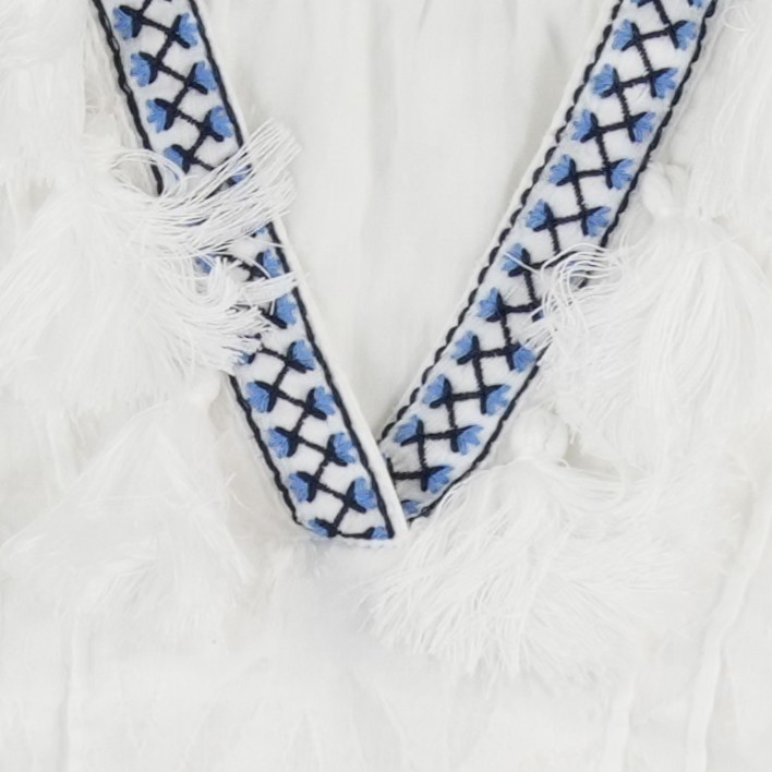Keywords: Coastal, Boho, Bohemian, Beachy, Vacation, Resortwear, Mediterranean, Nautical, Summer, Peasant, Tassel, Embroidered Trim, Tiered Skirt, Lightweight, Breathable