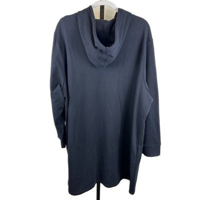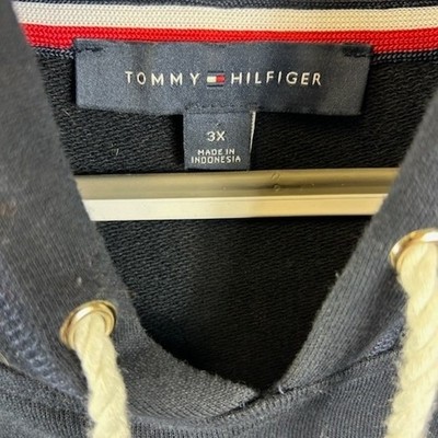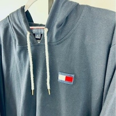 Tommy Hilfiger navy blue hoodie dress, a comfortable and stylish option for casual wear. This long sleeve dress features a classic hoodie silhouette with a front kangaroo pocket and adjustable drawstring hood. The signature Tommy Hilfiger flag logo is subtly embroidered on the chest. Perfect for everyday errands, lounging at home, or a relaxed weekend outing.