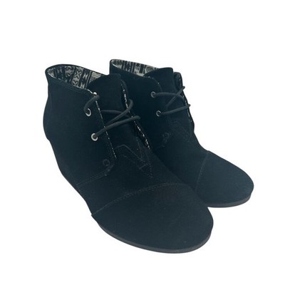 TOMS Black Suede Leather Lace Up Wedge Ankle Booties Boots Women’s Size 9.5