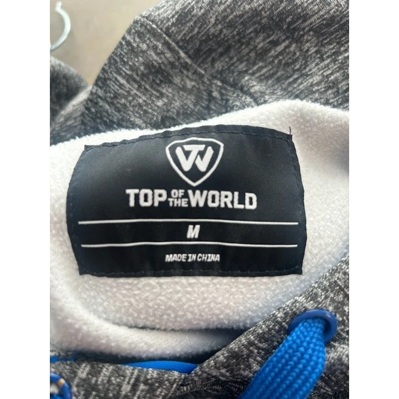 Stylish and comfortable Top of the World Kentucky Wildcats hoodie, perfect for showing your team spirit. This gray pullover sweatshirt features the Wildcats logo prominently displayed on the front, along with a kangaroo pocket for added convenience. Its design incorporates a heathered pattern that adds a touch of texture and visual interest, complemented by a contrasting blue lining inside the hood and on the drawstring. Great for game days, casual outings, or simply lounging at home.