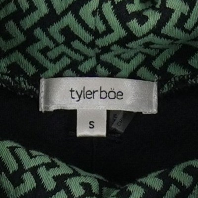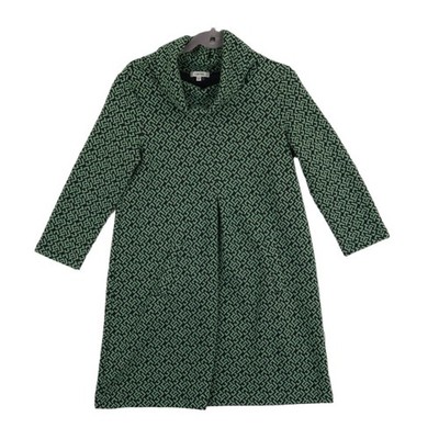 Excellent condition! Tyler Boe green and black geometric jacquard knit dress features a sophisticated cowl neck and a flattering A-line silhouette. The heavy knit fabric provides structure and warmth, while the intricate maze-like pattern adds a modern graphic touch. Design details include three-quarter length sleeves and a subtle front pleat that creates gentle movement.