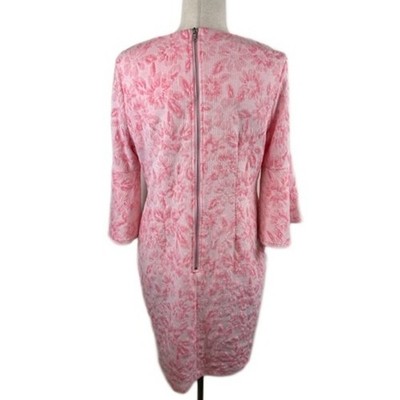Tyler Boe Pink Floral Jacquard 3/4 Bell Sleeve Dress Boat Neck Womens Size Large