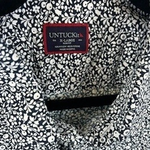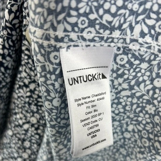 UNTUCKit Chaddsford slim fit short sleeve button down shirt in blue with an allover floral print. A classic collared design with a button front closure. Perfect for a casual day out or a relaxed office environment.