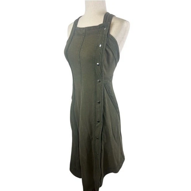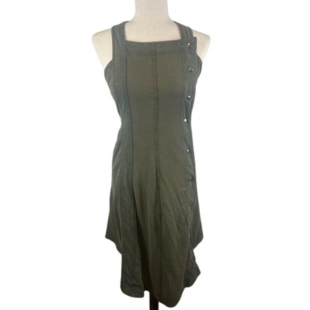 Stylish midi dress from Urban Outfitters’ Daily Practice line, perfect for adding a touch of understated cool to your wardrobe. Featuring a square neckline and cross-back straps, this dress boasts a unique button-front design that adds visual interest. The dress falls to a flattering midi length with an asymmetrical hemline, creating a modern silhouette. Its versatile design makes it easy to dress up or down. Pair it with sandals for a casual daytime look or dress it up with heels for a night out. Ideal for everyday wear, weekend outings, or casual gatherings.