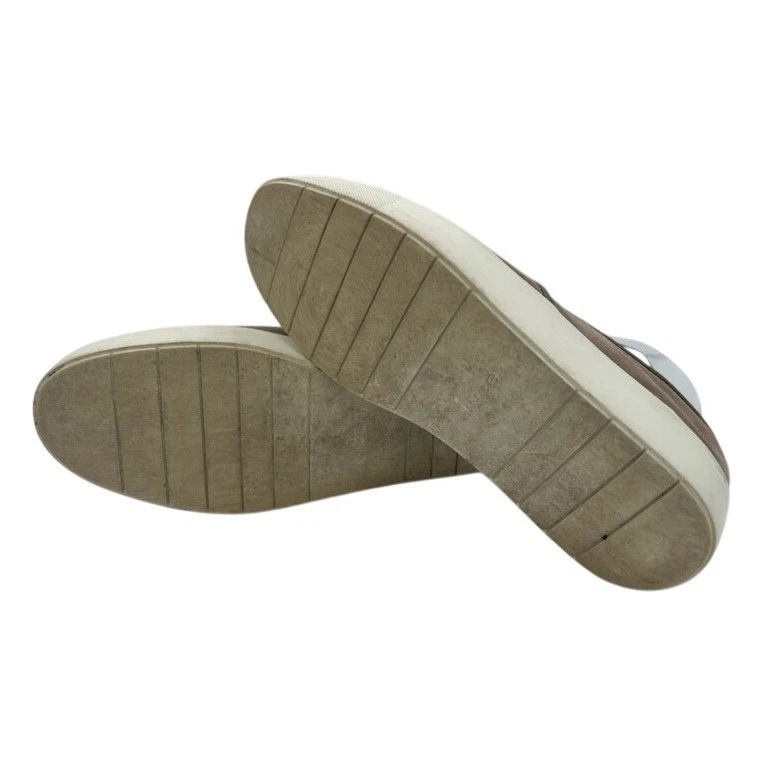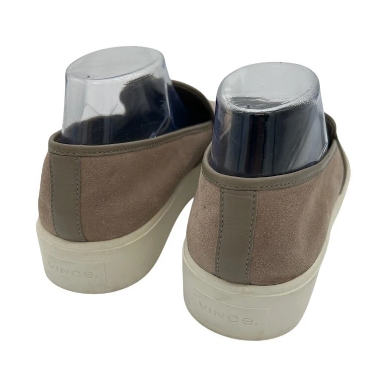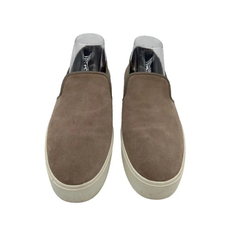 Effortless style defines these Vince slip-on sneakers, a perfect blend of comfort and chic design. The sleek silhouette and neutral taupe hue offer versatility, easily complementing a wide range of outfits. These shoes feature a comfortable platform sole that provides a subtle lift, while the supple suede upper adds a touch of luxury. The minimalist design ensures they remain a timeless addition to your wardrobe. Ideal for weekend errands, casual outings with friends, or adding a relaxed vibe to your everyday look.