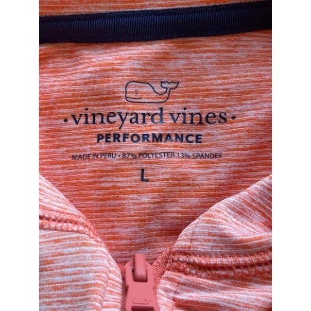 Energize your activewear collection with this vibrant coral Vineyard Vines Performance pullover. Feel the freedom of movement with its lightweight design and experience enhanced breathability during workouts or casual outings. Featuring a convenient quarter-zip closure, it allows for customized ventilation, while the subtle Vineyard Vines logo adds a touch of refined style. The long sleeves provide extra coverage, making it ideal for cooler weather. Wear it for a morning jog, a weekend hike, or a relaxed day at the golf course.