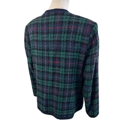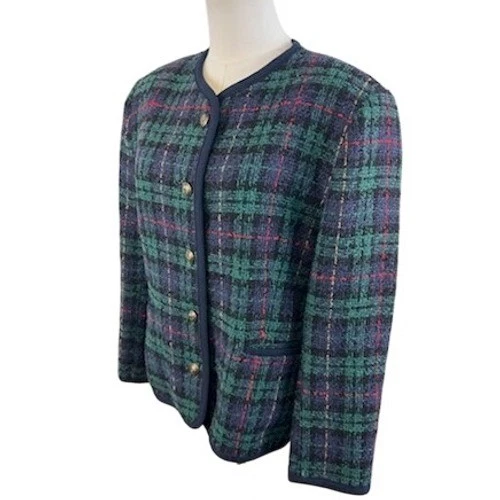 Keywords: Alfred Dunner, Plaid Blazer, Tweed Jacket, Wool Blend, Size 12, Womens Blazer, Career Wear, Vintage Blazer, Classic Style, Navy Trim, Gold Buttons, Professional Attire, Fall Fashion, Winter Fashion