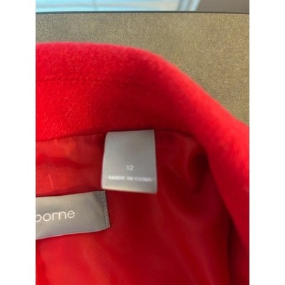 Keywords: Liz Claiborne, blazer, red blazer, wool blazer, womens blazer, size 12, button front, crest patch, classic, retro, vintage inspired, career wear, formal wear, ladies blazer