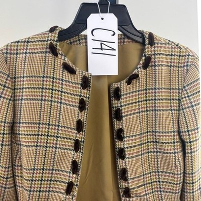 Keywords: Valentino, blazer, jacket, plaid, tweed, velvet, designer, Italian, tailored, classic, sophisticated, preppy, business casual, outerwear