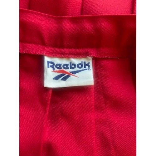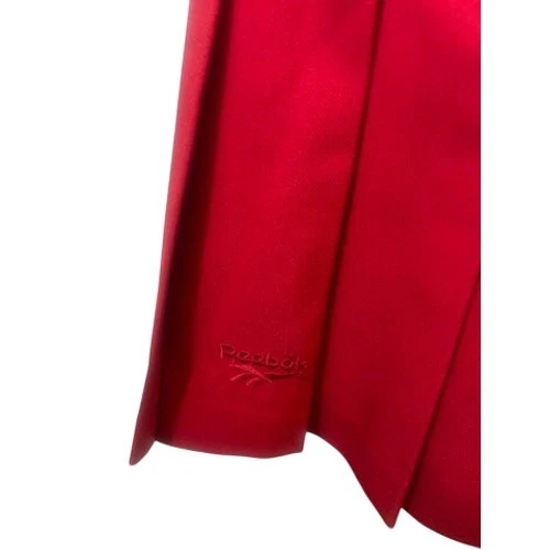 Excellent condition! A vibrant splash of sporty chic, this red pleated skirt brings a playful energy to any ensemble. The classic pleats create a flattering silhouette, offering both movement and style. A subtle Reebok logo is embroidered on the front, adding a touch of athletic heritage. Imagine yourself turning heads on the tennis court, exuding confidence on the golf course, or simply making a statement with a bold, fashionable look. This skirt is perfect for a casual day out, a sporty event, or adding a pop of color to your everyday wardrobe.