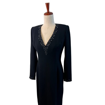 Keywords: VT by Travilla, black dress, formal dress, gown, long sleeve dress, rhinestone dress, evening gown, special occasion dress, little black dress, cocktail dress, party dress, vintage dress, elegant dress, classic dress