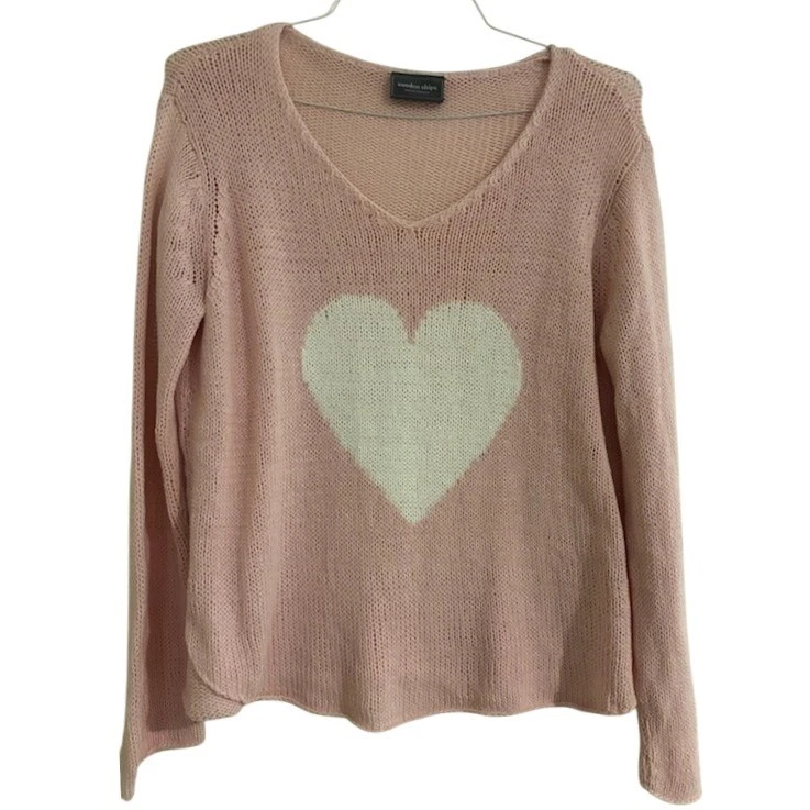 Excellent condition, looks like new! A charming pink v-neck knit sweater with a white heart graphic. Crafted for comfort and style, this sweater features a relaxed fit and a soft texture that makes it perfect for everyday wear. Its versatile design makes it an ideal choice for casual outings, cozy nights in, or as a sweet addition to a Valentine’s Day ensemble.