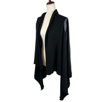 Features: Open Front, Draped, Raw Edge Hem, Faux Leather Sleeves, Cashmere Knit