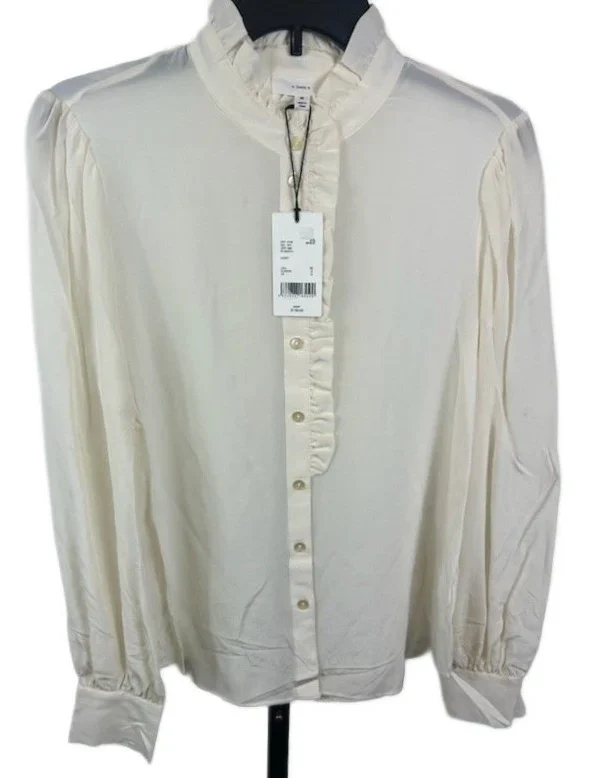 A Loves A Ivory Silk Ruffle Mock Neck Button Up Blouse Size Medium