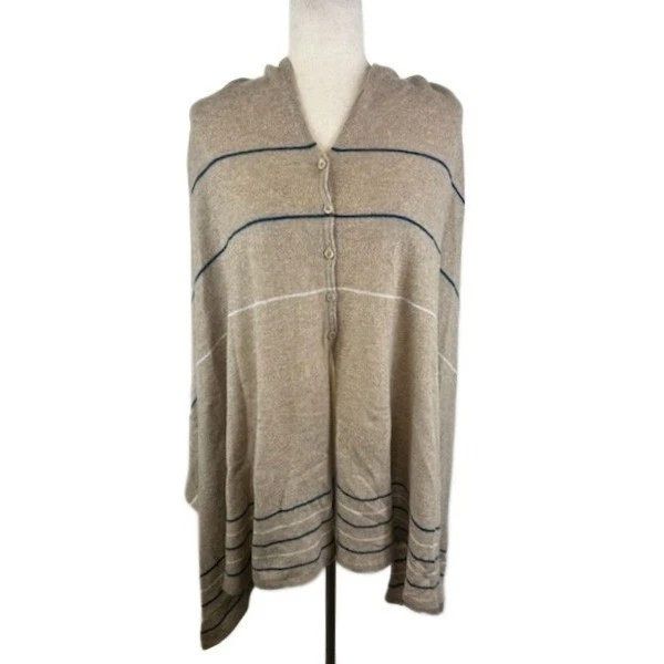 27 Miles Malibu 100% Cashmere Button Poncho Cape Shawl Tan One Size