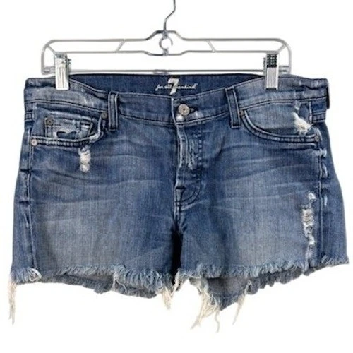 7 For All Mankind Women's Size 28 Medium Wash Distressed Denim Cutoff Shorts