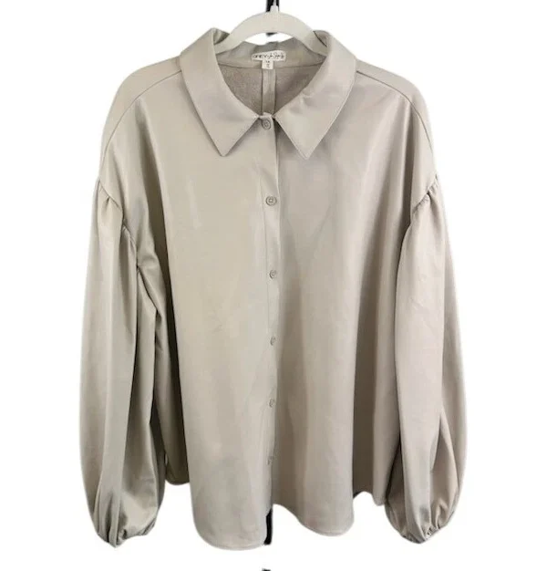 GREY by Jason Starkey Faux Leather Button Top Blouse Balloon Sleeve Size 1X