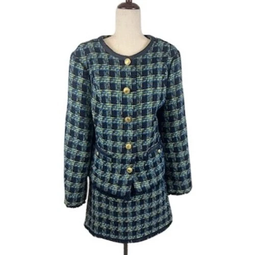 G by Giuliana Black Label Blue Tweed Skirt Suit Set Blazer Career Size 1X