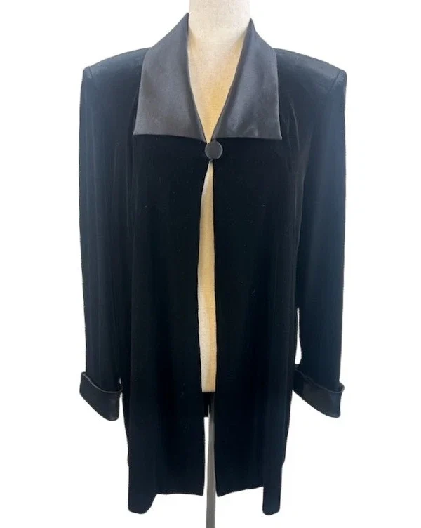 Alex Evenings Velvet Jacket Top Black One Button Satin Tuxedo Lapel Size 1X