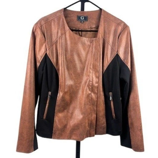G by Giuliana Women's Size 1X Brown Black Faux Leather Light Moto Jacket Coat