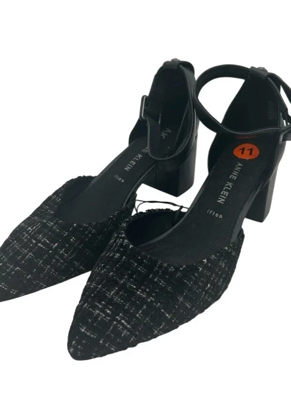 Anne Klein Women's Black Tweed Pointed Toe Ankle Strap Block Heel Pumps Size 11