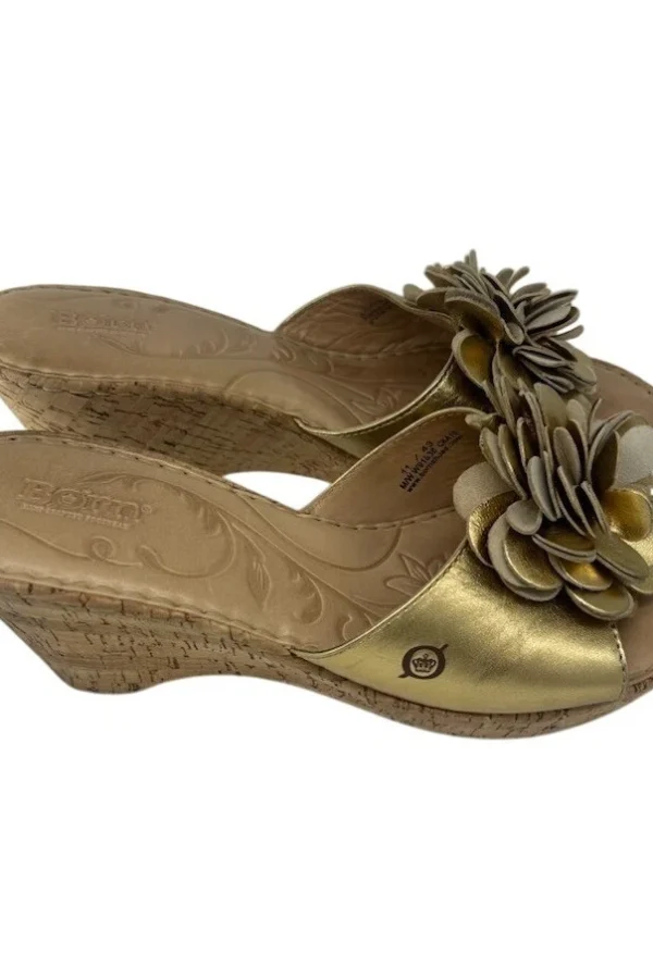 Born Gold Flower Cork Wedge Sandals Slides Comfortable Size 11