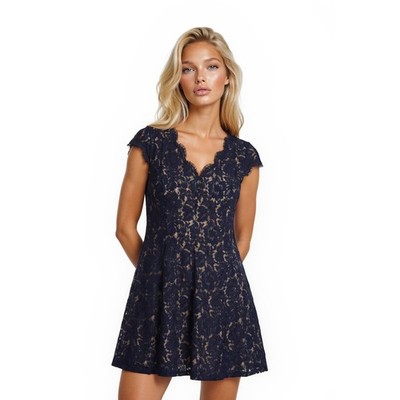 Eliza J Lace Fit Flare Dress Women's Size 16W Navy Blue Floral Kentucky Derby