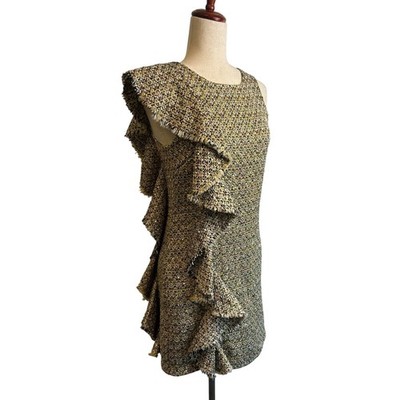 Julie Brown NYC Tweed Dress Ruffle Sleeveless Party Cocktail