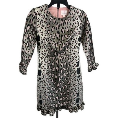 Julie Brown NYC Leopard Print Dress Ruffle Trim Long Sleeve Stunning Size 2