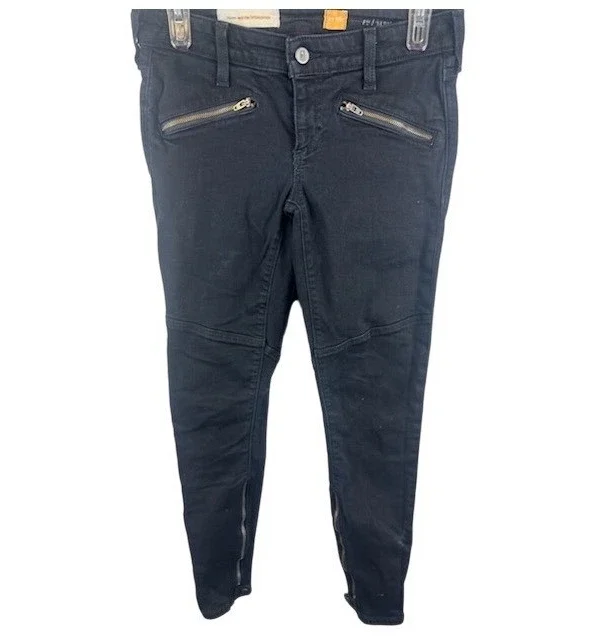 Pilcro Anthropologie Letterpress Moto Skinny Ankle Black Jeans Zippers Size 26