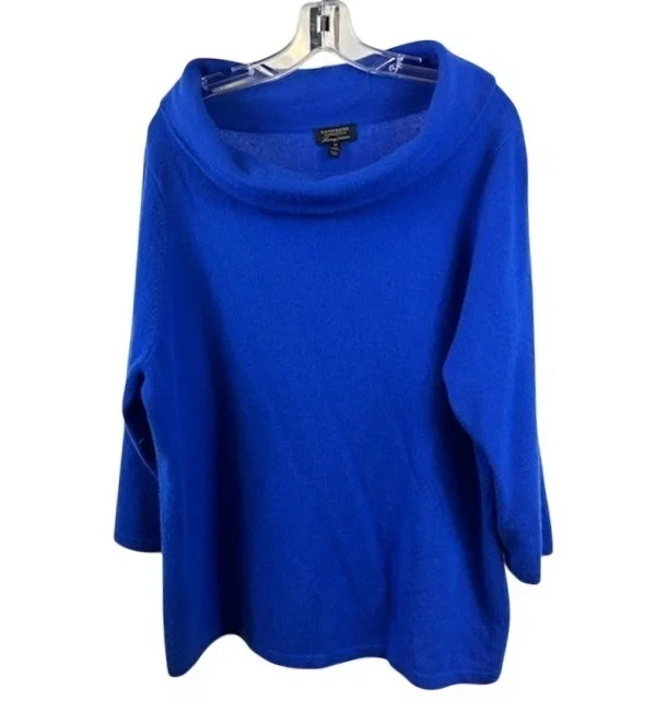 Charter Club Luxury 100% Cashmere Sweater Women's Size 3X Blue Mod Cowl Neck