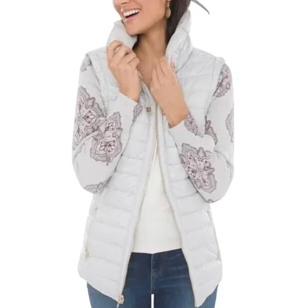 Chico's Zenergy Jacket Women's Size 3 XL 16 Gray Geometric Coat Full Zip Puffer
