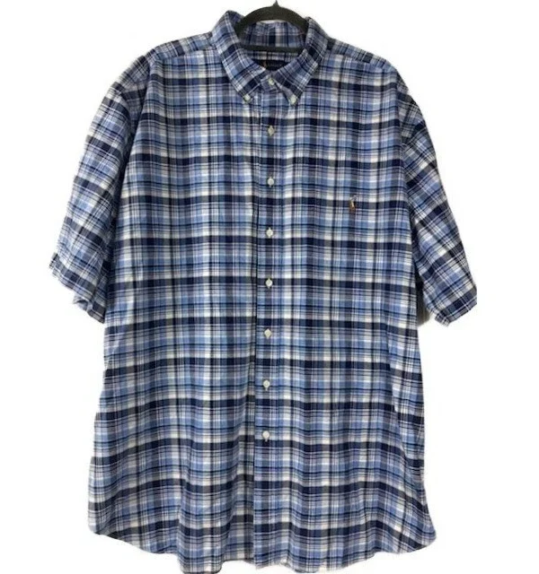 Ralph Lauren Men's Size 3XLT Tall Blue Plaid Button Down Shirt Short Sleeve