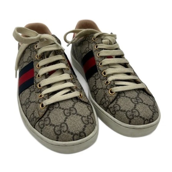 Gucci Women's Size 36 US 6 GG Supreme Canvas Ace Sneakers Red Blue Stripe Logo
