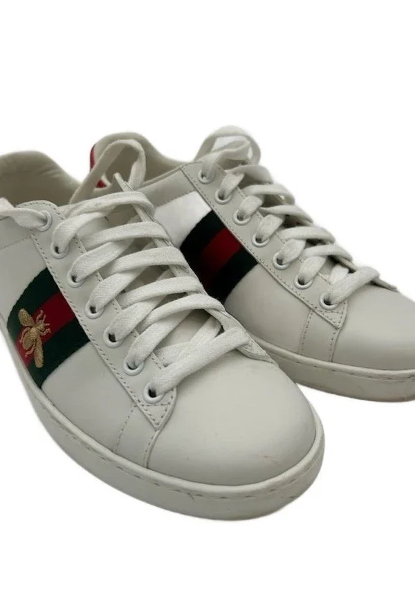 Gucci Women's Size 36 US 6 White Leather Bee Stripe Ace Sneaker Tennis Shoes