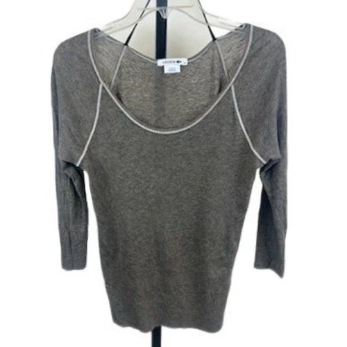 Lacoste Women's Size 36 US Small Taupe Scoop Neck Long Sleeve Sweater Top Y2K