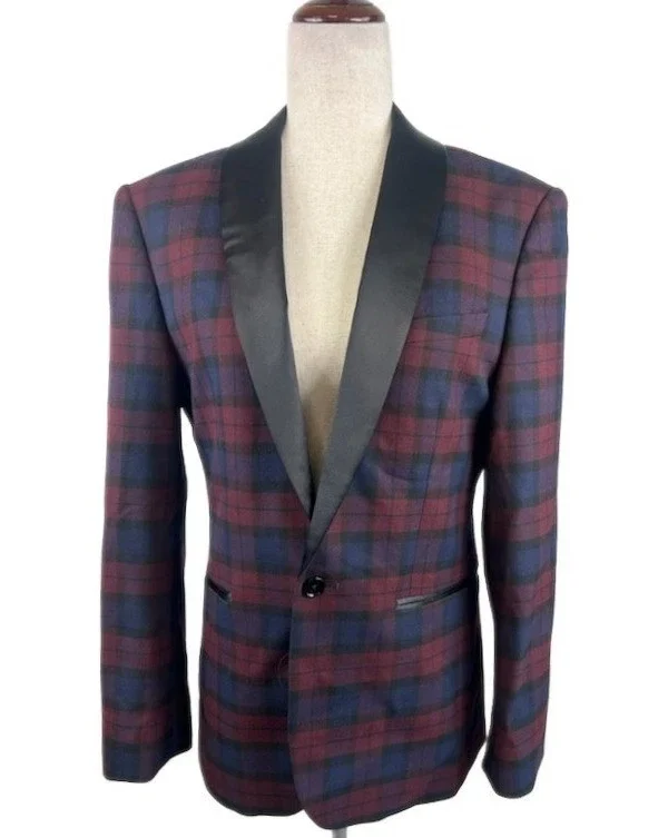 Vintage Express Slim Fit Plaid Blazer Black Tie Tuxedo Jacket Men's Size 36S
