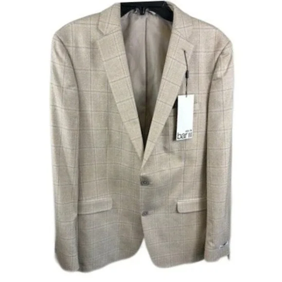 New Bar III Mens Tan Plaid Two Button Slim Fit Blazer Jacket Size 42L