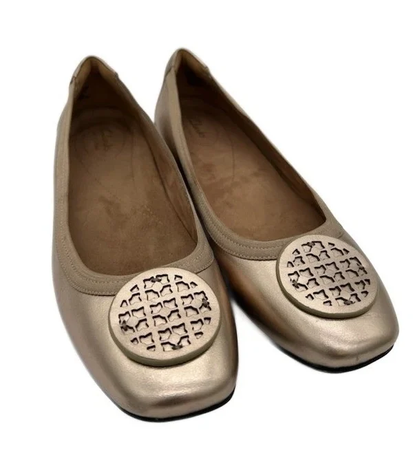 Clarks Women's Size 7 M Gold Metallic Ballet Flats Slip On Casual Shoes Loafers