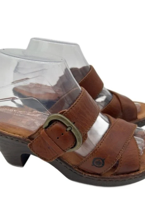 Born Women's Shoes Size 7 Brown Leather Clogs Buckle Block Heel Sandals