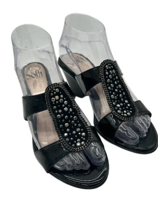Sofft Shoes Women's Size 7M Black Patent Leather Wedge Sandals Crystals 7 M