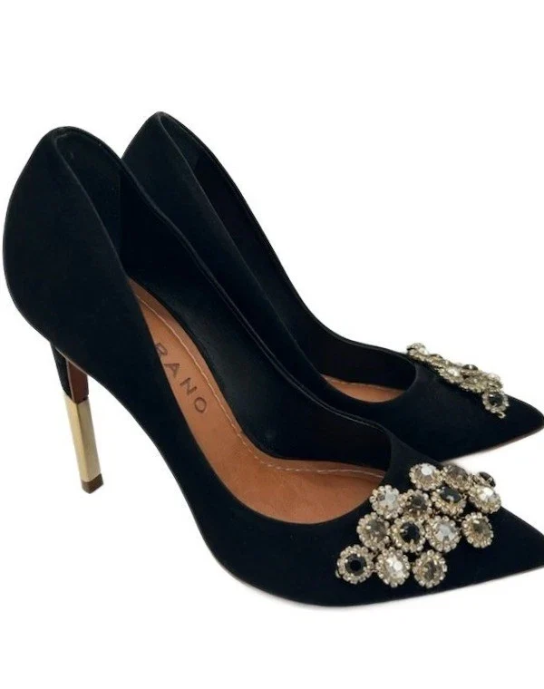 Carrano Suede Shoes Women's Size 7 Black Embellished Stiletto Heel Pumps