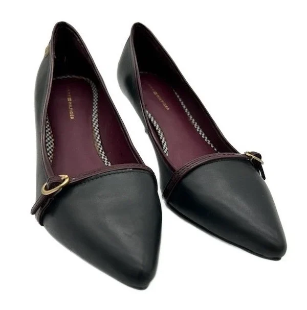 Tommy Hilfiger Women's Size 7M Black Leather Pointed Toe Kitten Heel Pumps Shoes
