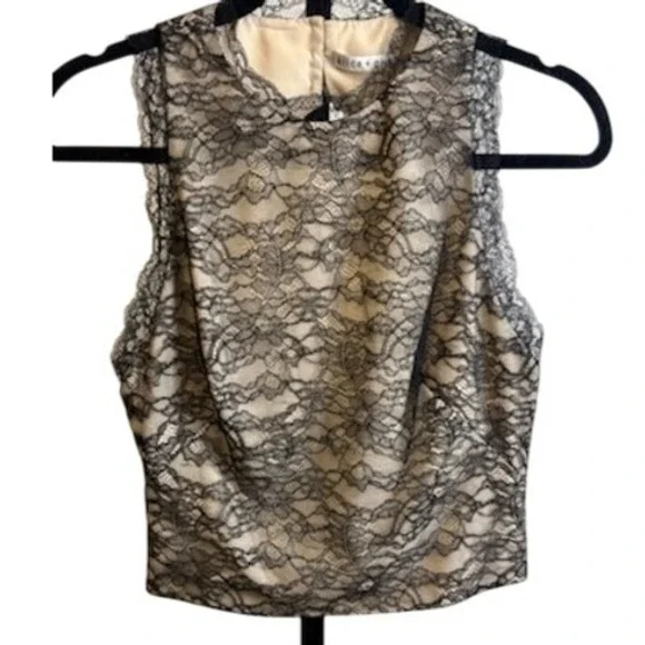 Alice + Olivia Top Women's Size 8 Black Lace Open Keyhole Back Blouse High Neck