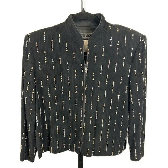 Alex Evenings Jacket Women's Size 8 Black Sequin Embellished Zip-Front Top